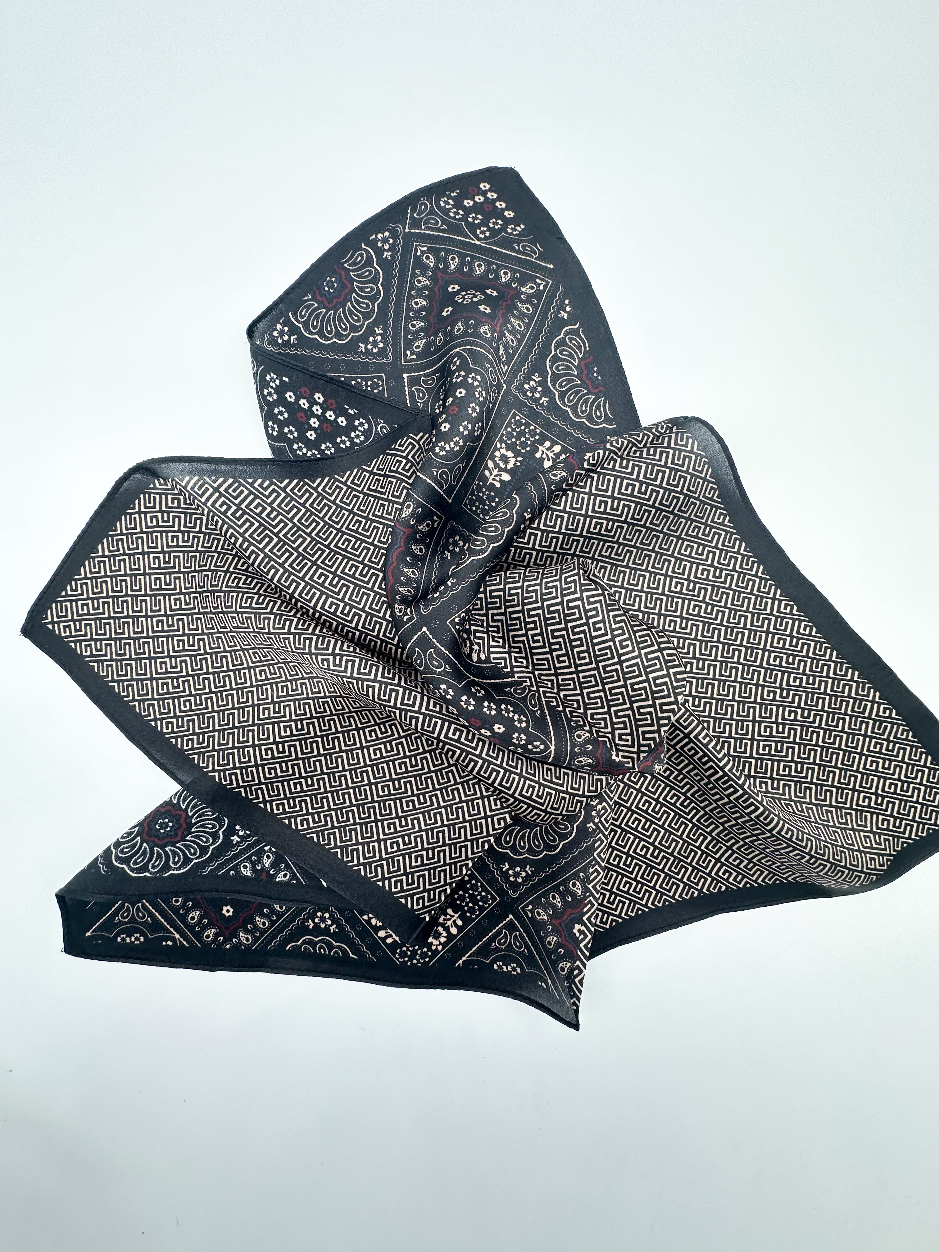 Neliela izmēra dabīgā zīda lakats, izmērs 53x53 cm. Lai uzzinātu vairākus šī lakata izmantošanas veidus un smeltos iedvesmu savam stilam, apmeklē sadaļu "Padomi un raksti"