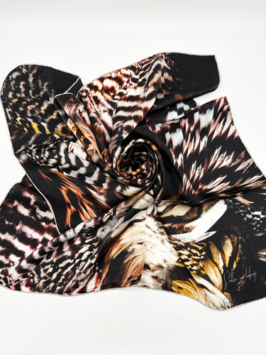 Dabīgā zīda satīna lakats 90x90 cm "Putna piens II"