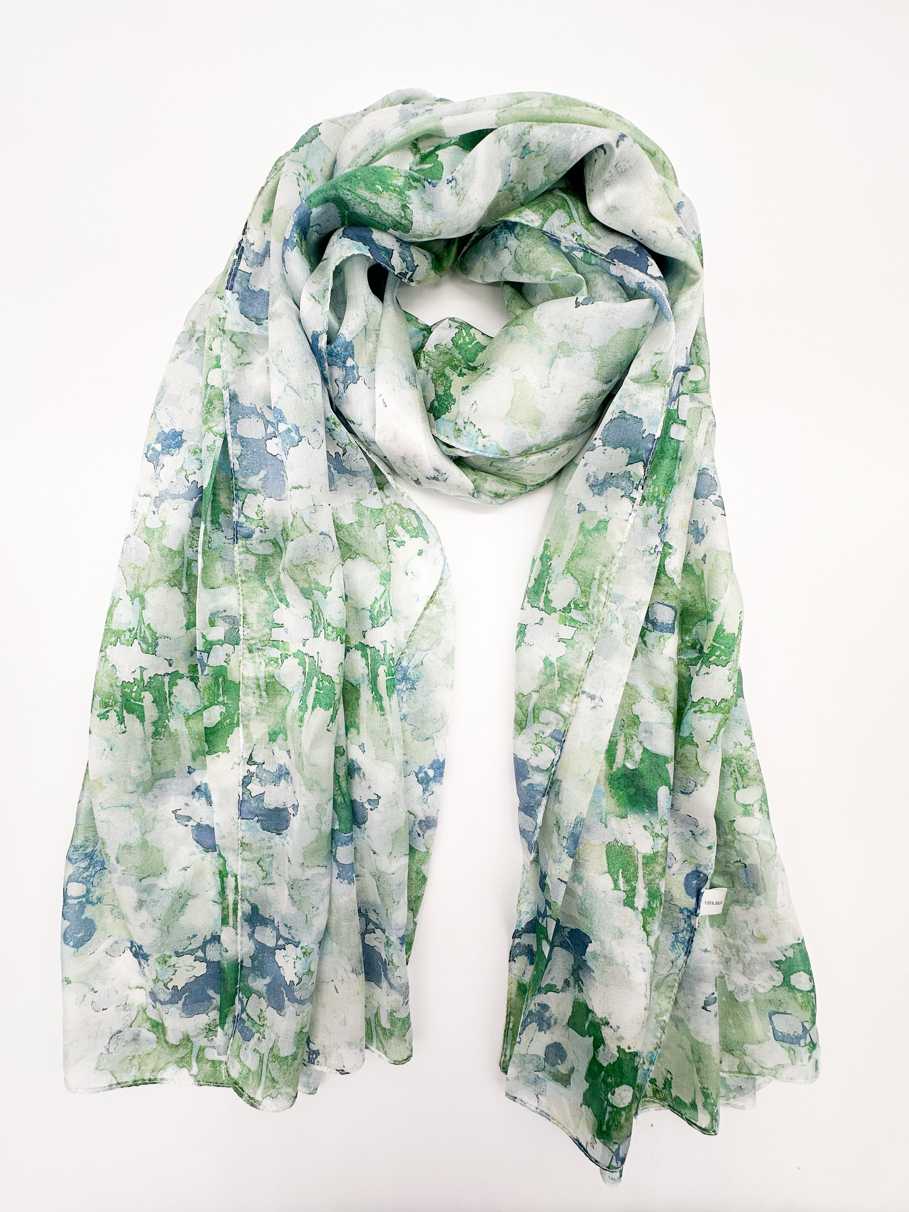 A natural silk chiffon scarf is perfect for wearing with a dress, top, as well as a spring coat or other light outerwear! This scarf is airy, transparent, and light with a beautiful fabric drape.