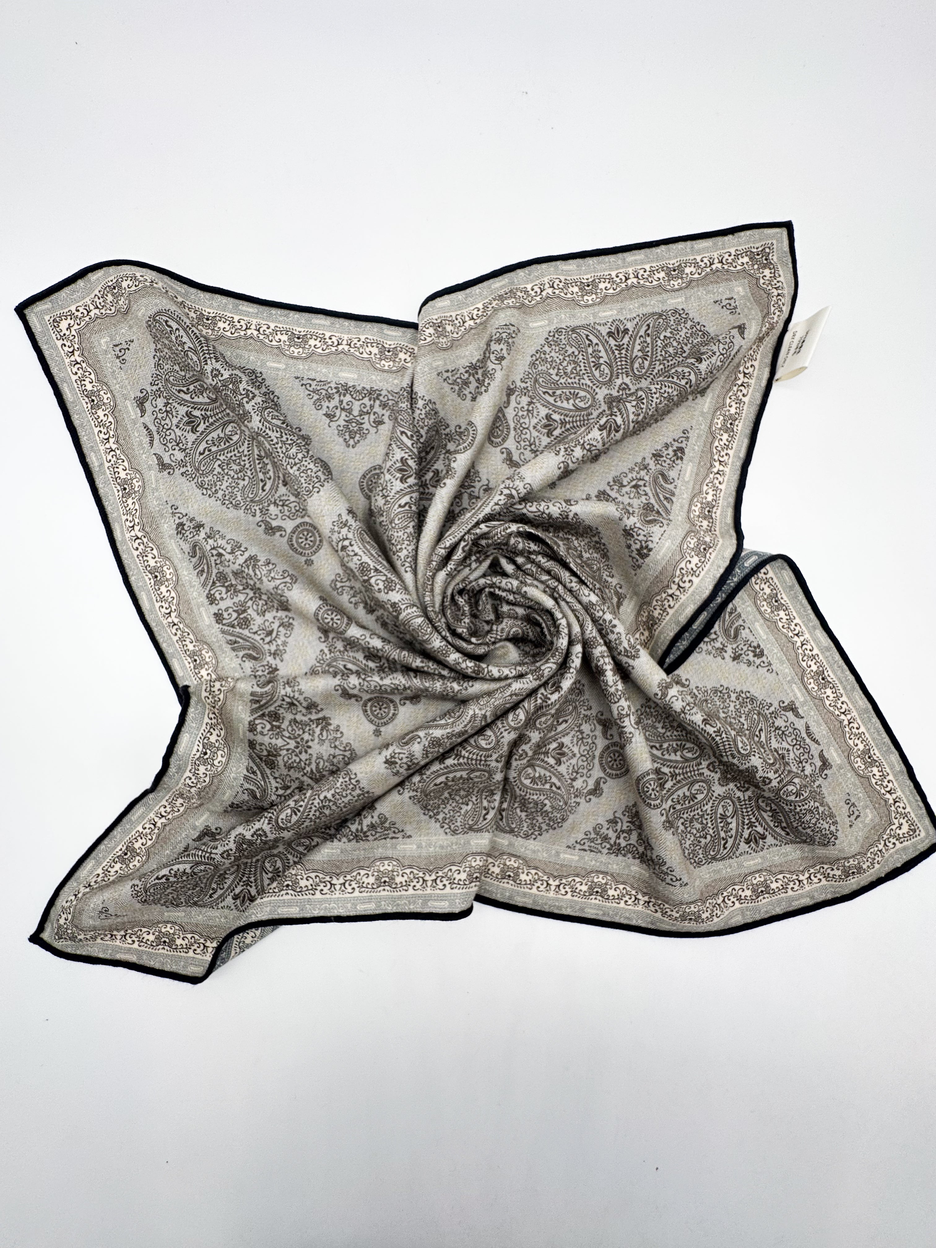 A 60% wool and 40% silk scarf suitable for wearing with coats and jackets during the winter season. This product has a hand-finished edge.