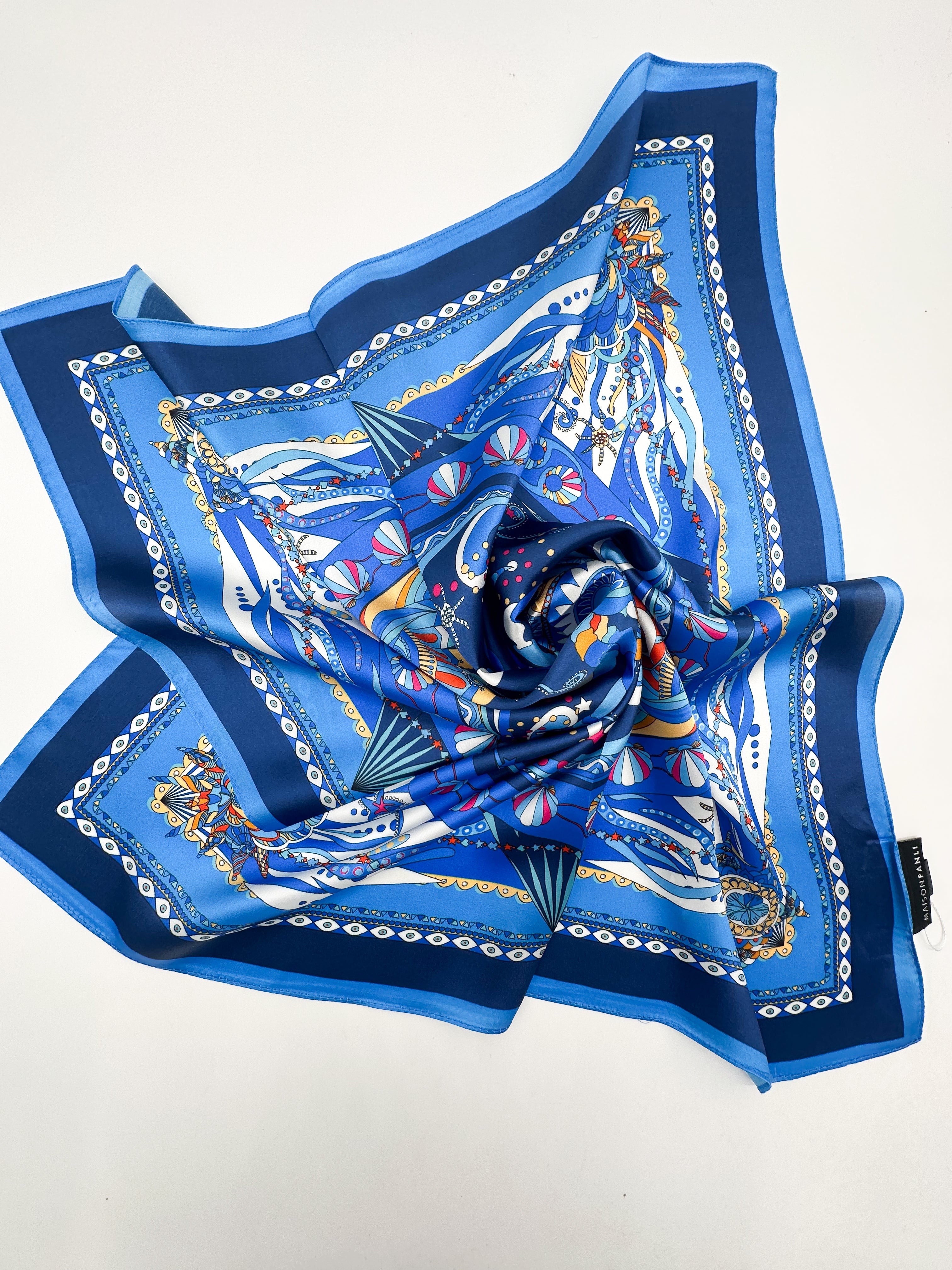 Natural silk scarf 68x68 cm suitable for wearing with dresses, blouses, and sweaters, as well as tying around the wrist or as an accessory for a bag.