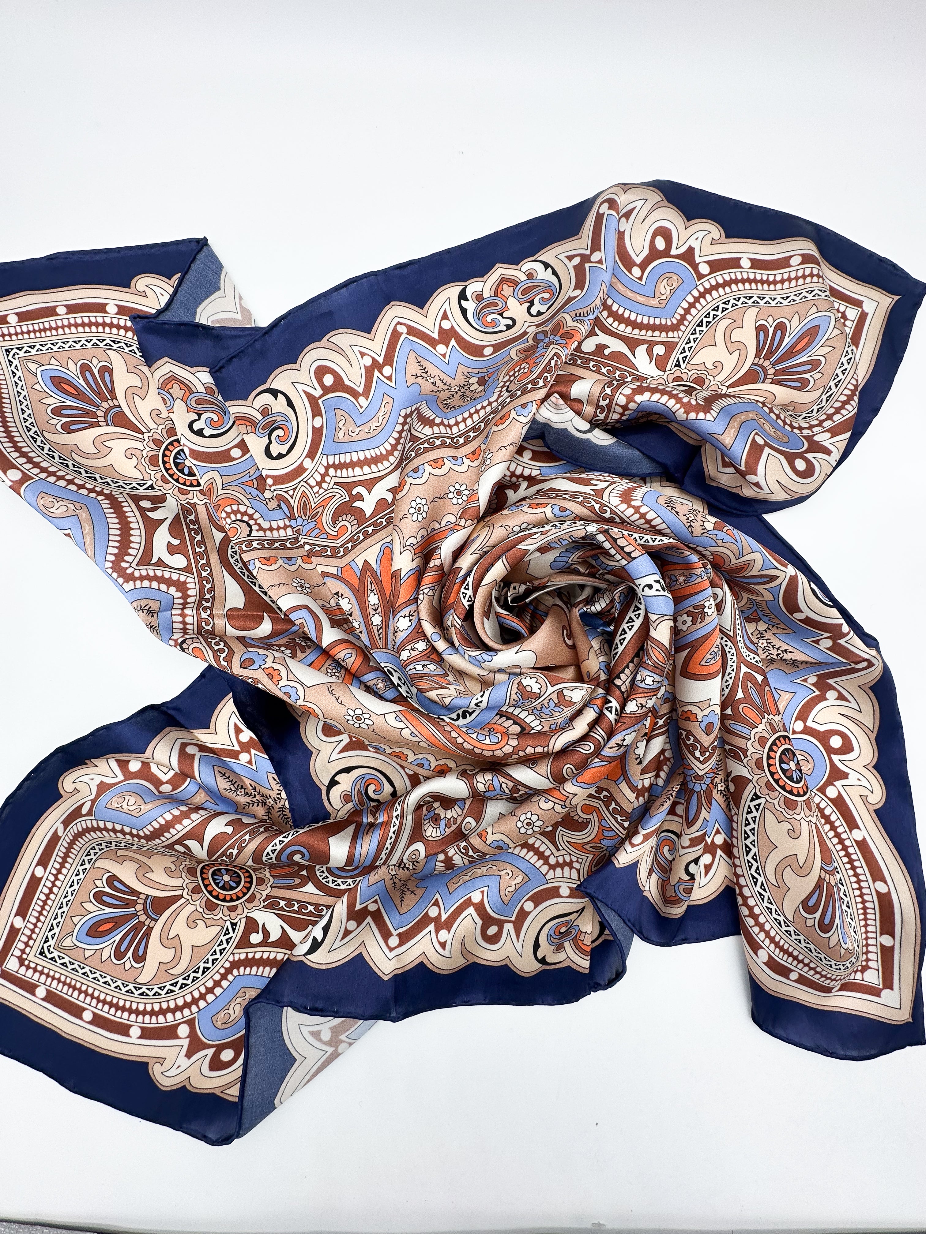 Natural silk satin scarf 108x108 cm - this silk scarf features a beautiful shine and rich fabric drape, with a hand-finished edge. This scarf is an exclusive product intended for delicate wearing, suitable for washing only by hand or dry cleaning!