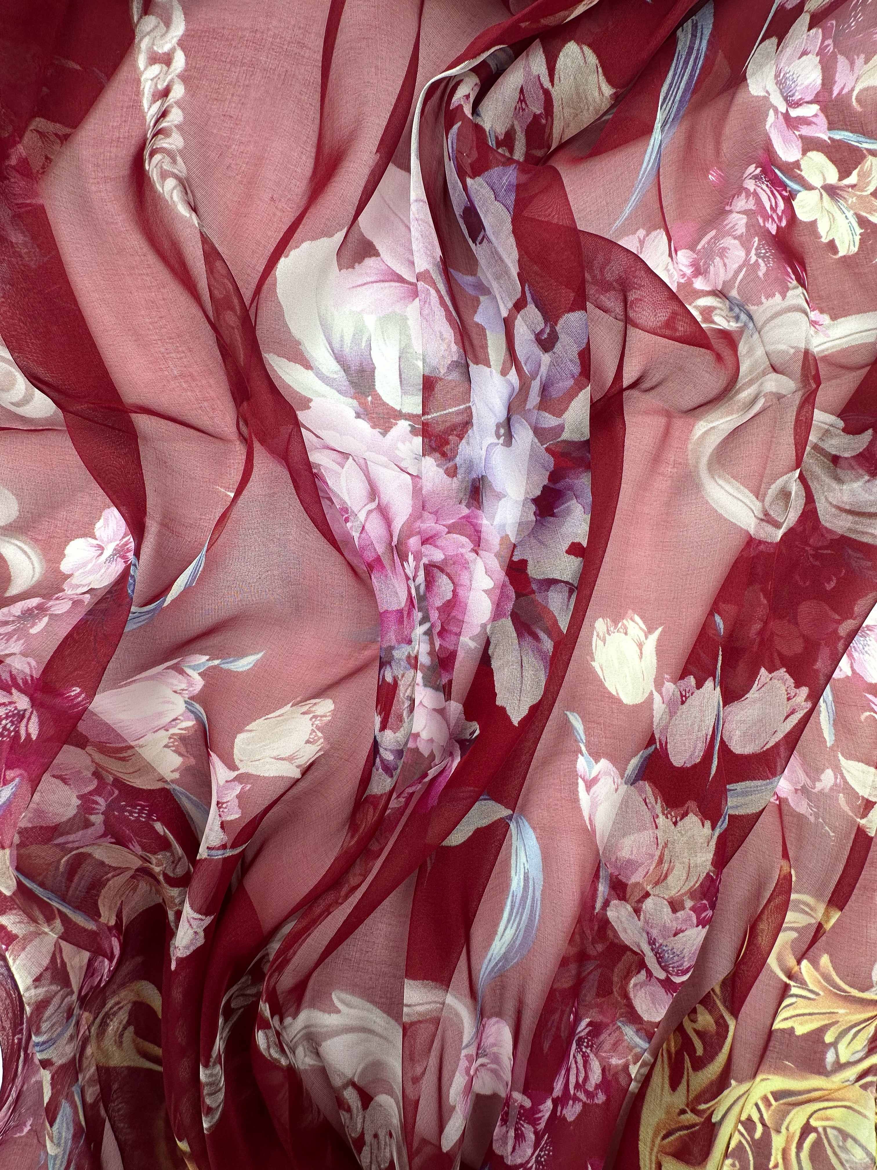 The natural silk chiffon scarf is perfect for wearing with a dress, top, as well as a spring coat or other light outerwear! This scarf is airy, sheer and lightweight with a beautiful drape.