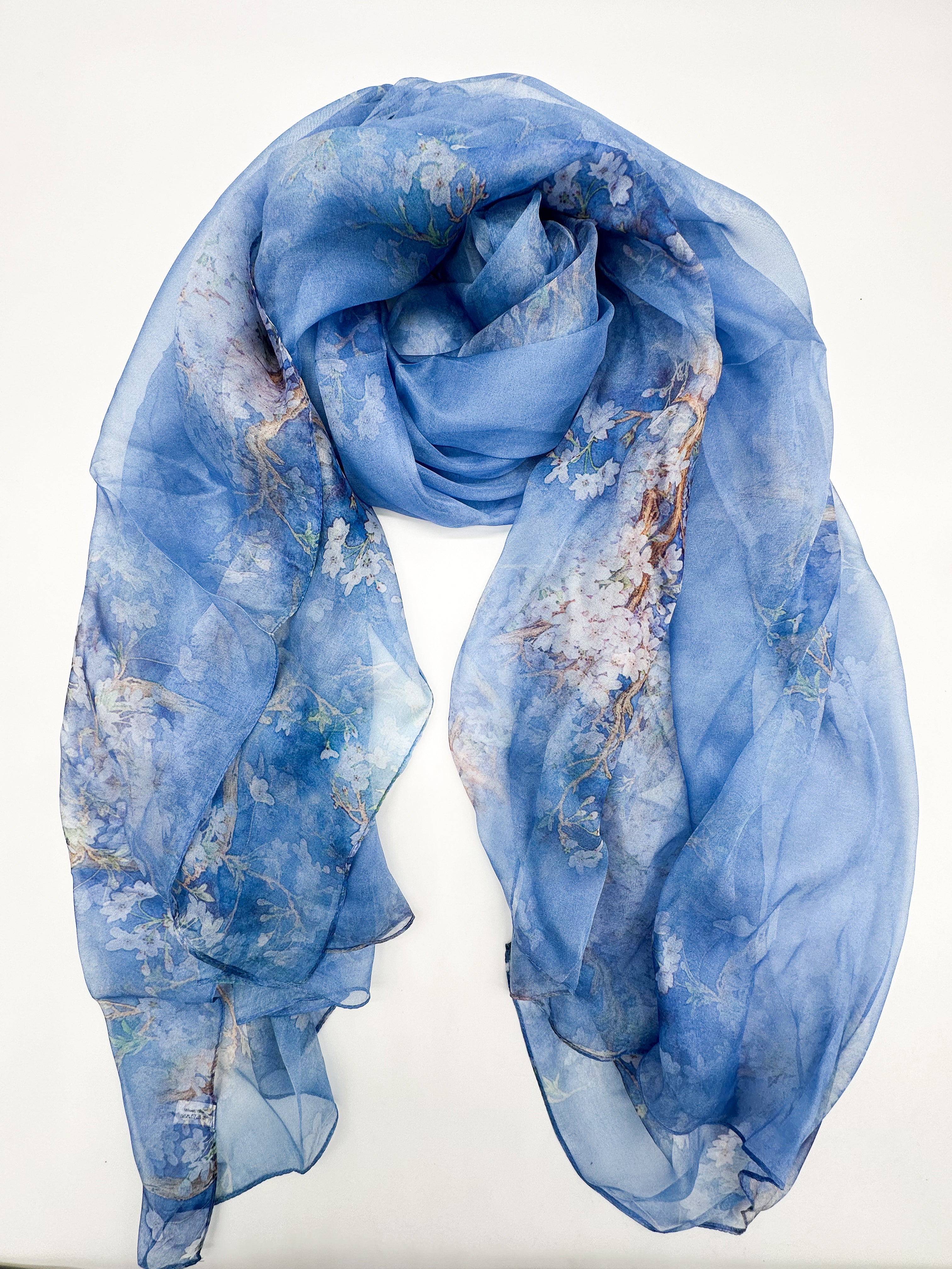 The natural silk chiffon scarf is perfect for wearing with a dress, top, as well as a spring coat or other light outerwear! This scarf is airy, sheer and lightweight with a beautiful drape.