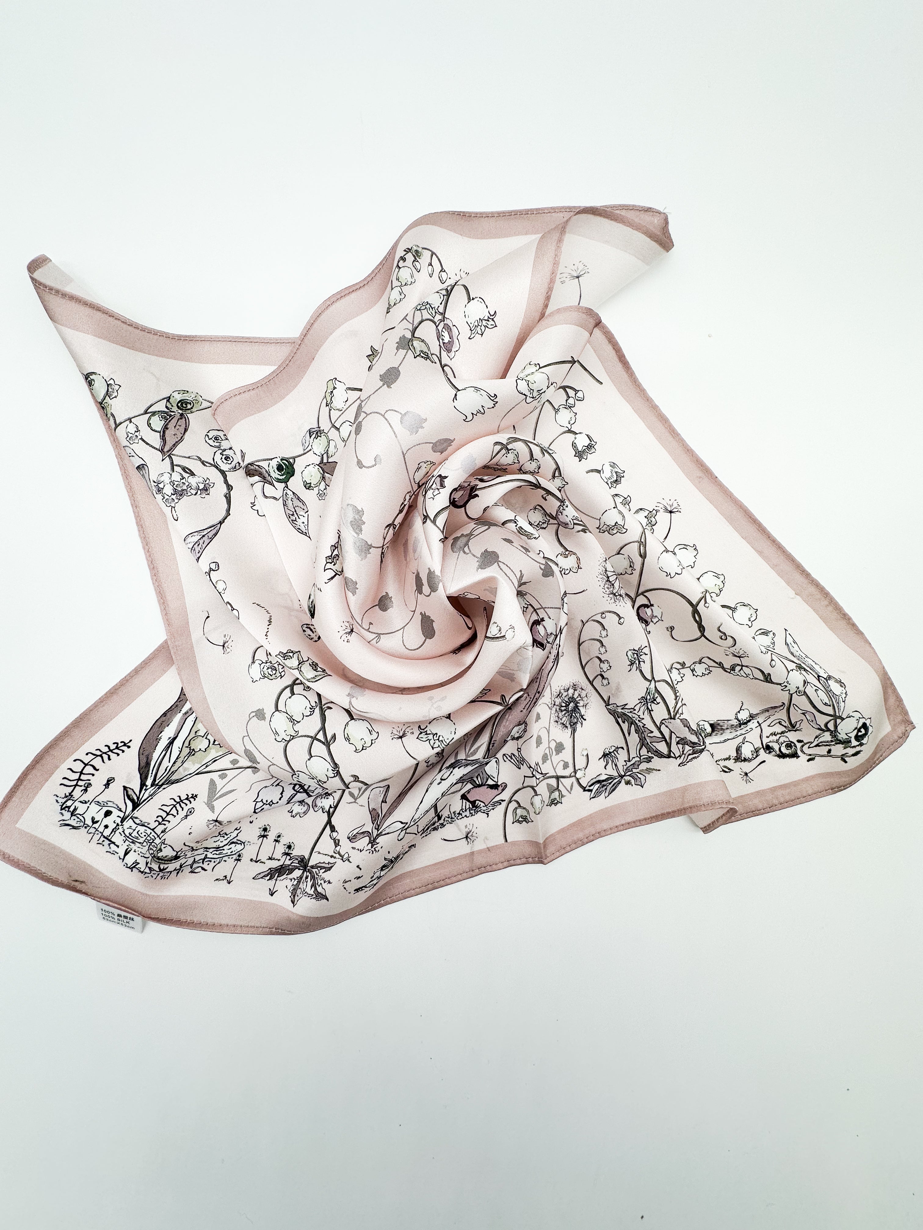 Small-sized natural silk scarf, size 53x53 cm. To learn several ways to use this scarf and get inspiration for your style, visit the "Tips and Articles" section