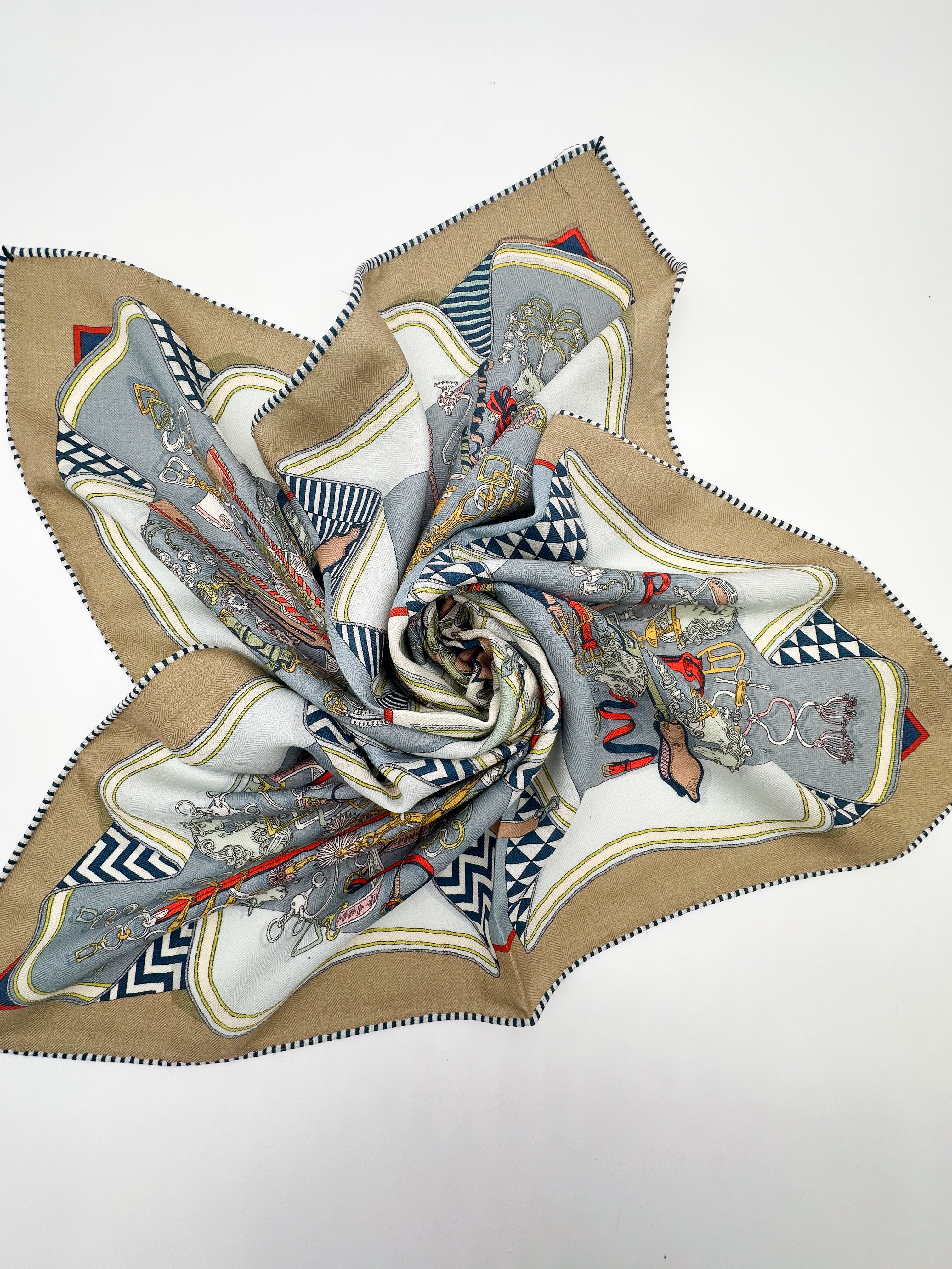A 60% wool and 40% silk scarf suitable for wearing with coats and jackets during the winter season. This product has a hand-finished edge.