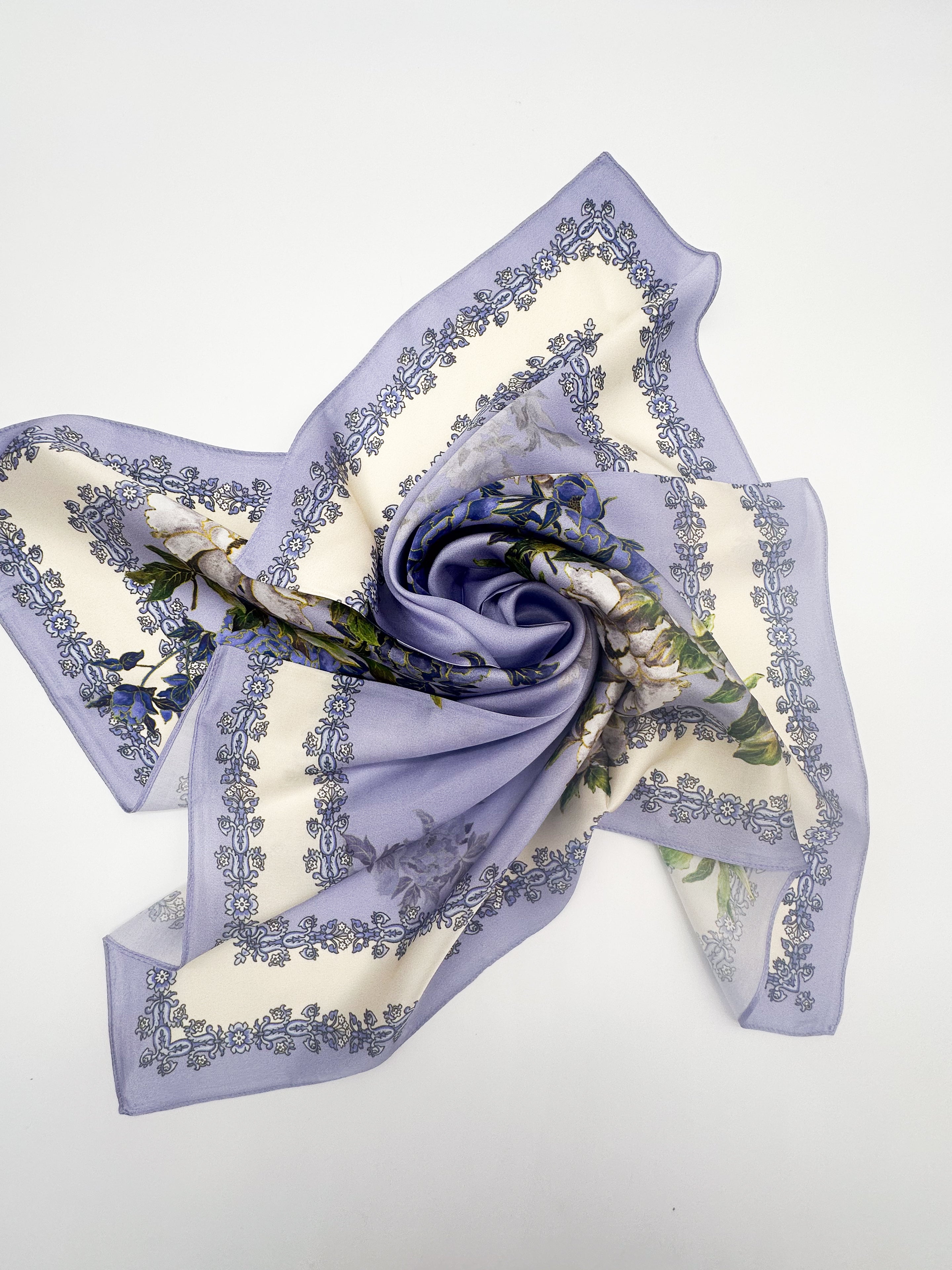 Dabīgā zīda lakats 68x68 cm "Violētā buķete"