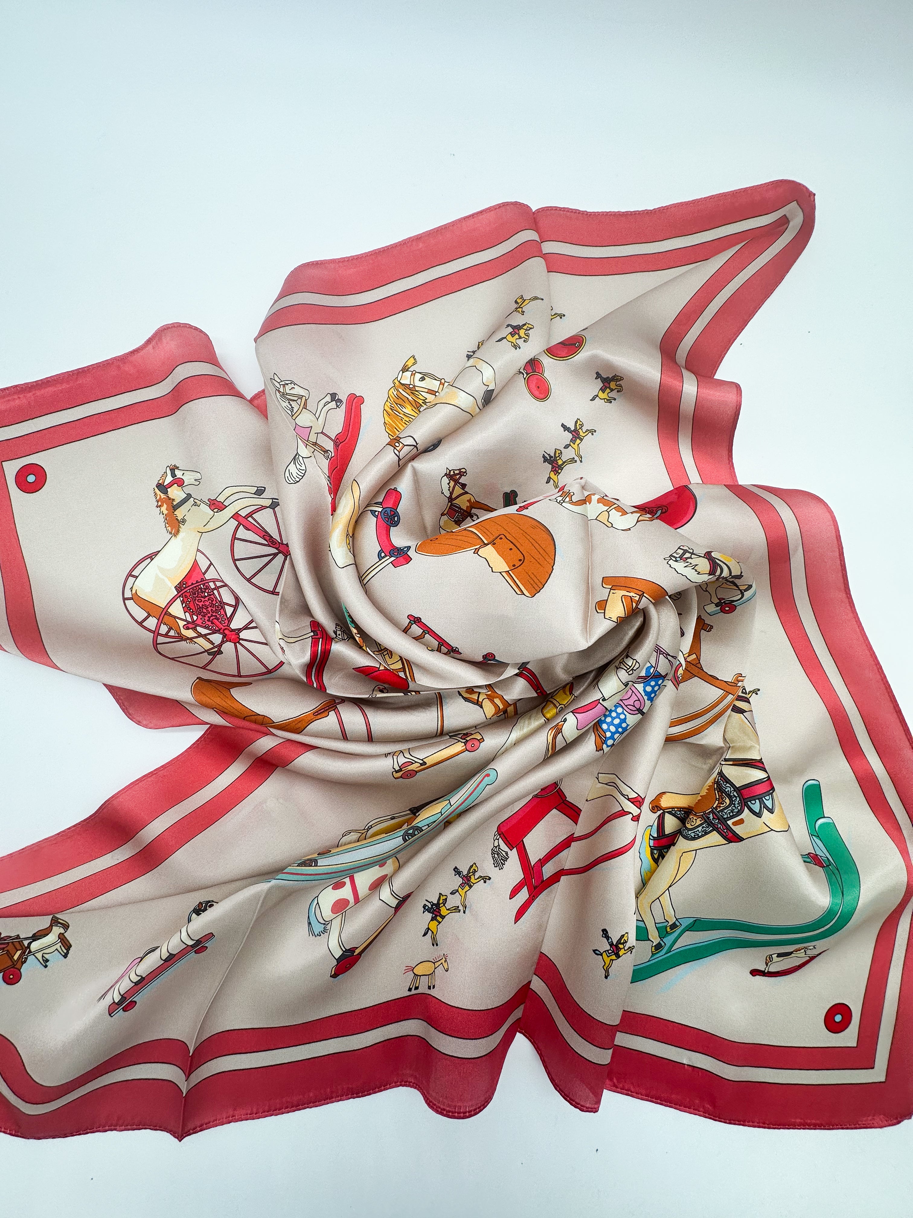 Dabīgā zīda satīna lakats 90x90 cm "Šūpuļzirdziņš"