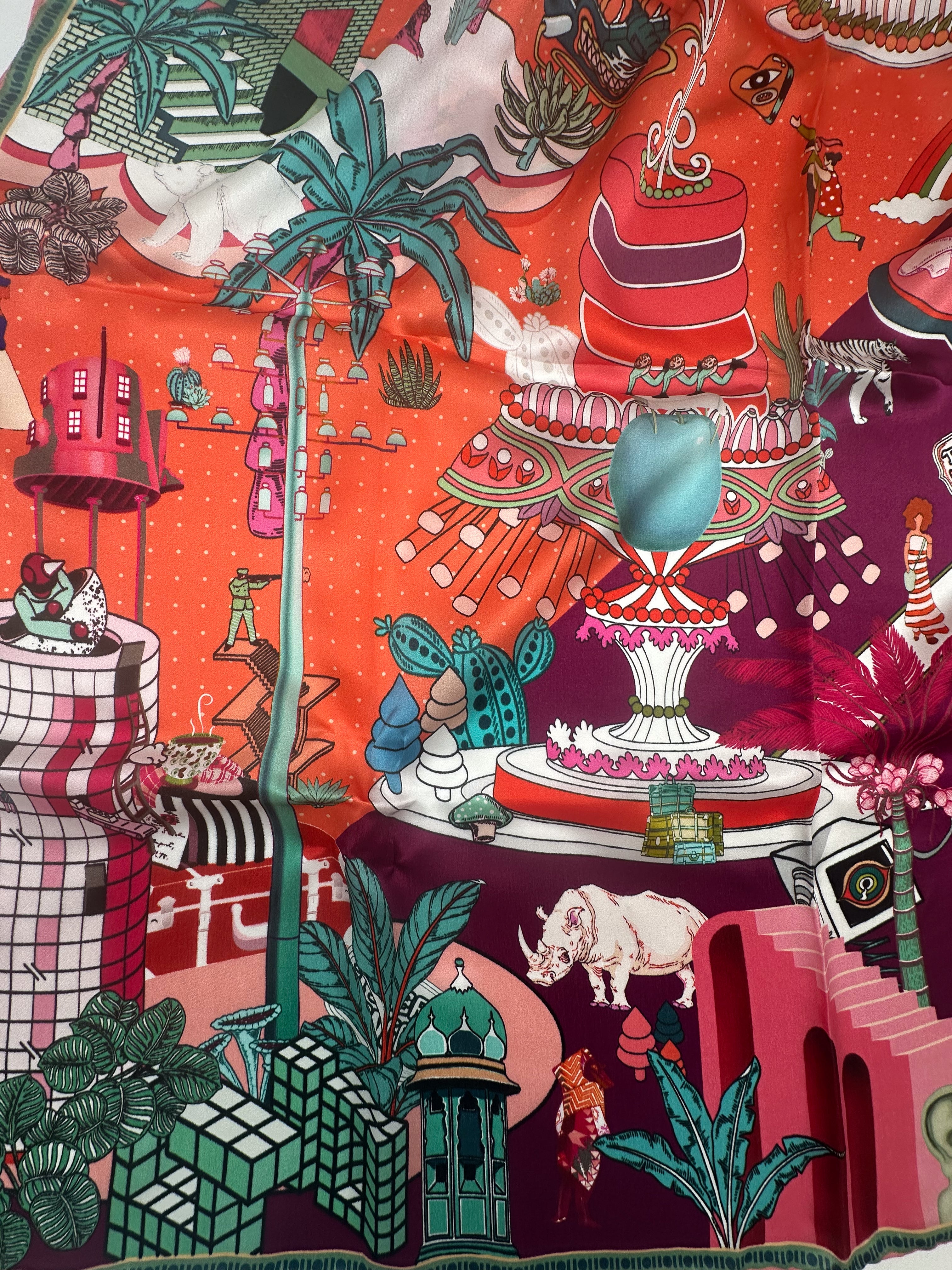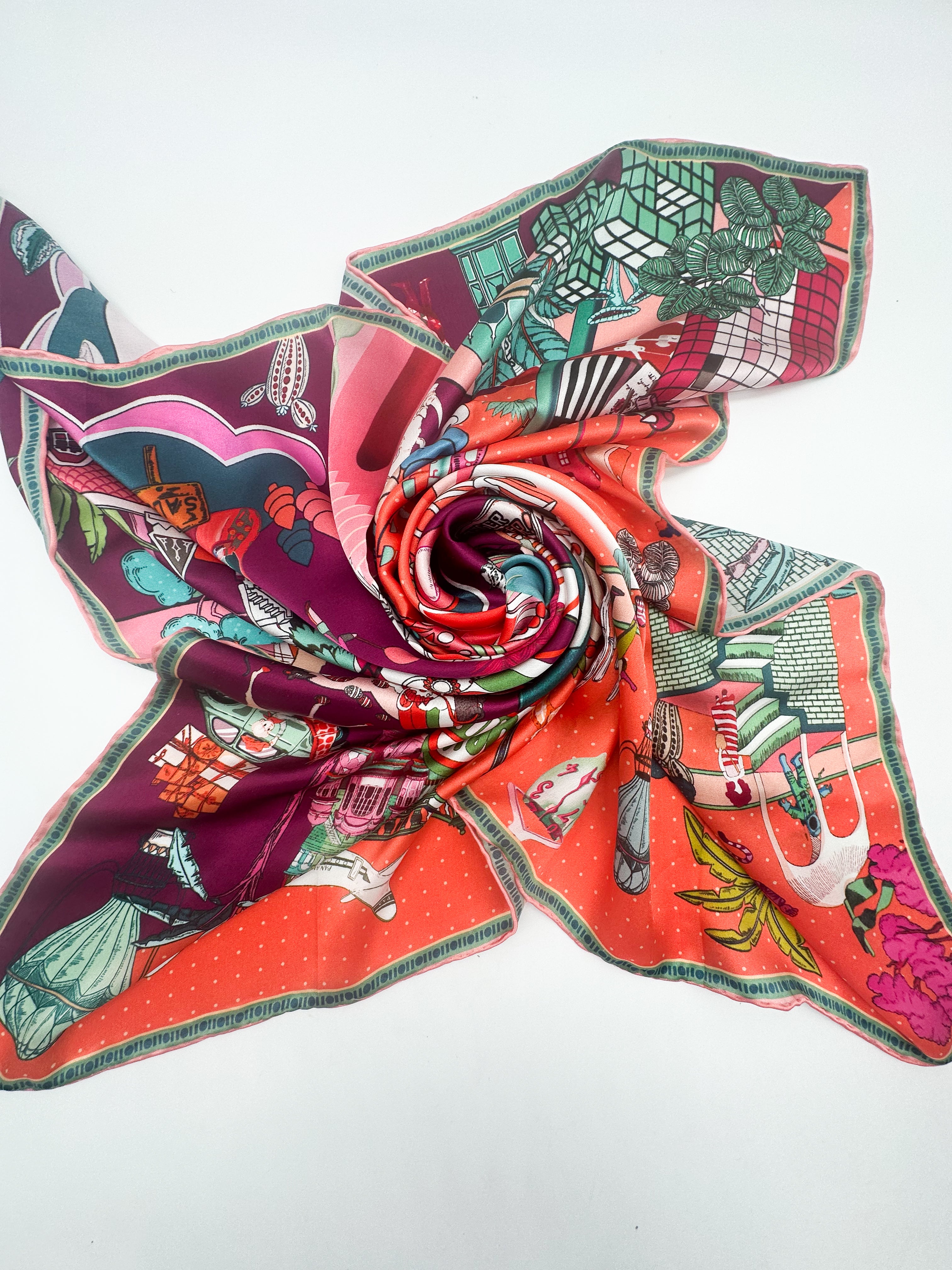 Dabīgā zīda satīna lakats 90x90 cm "Karuselis II"