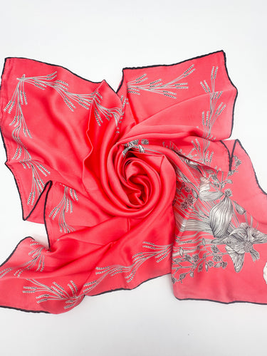 Dabīgā zīda satīna lakats 90x90 cm "Sārtais ziediņš"