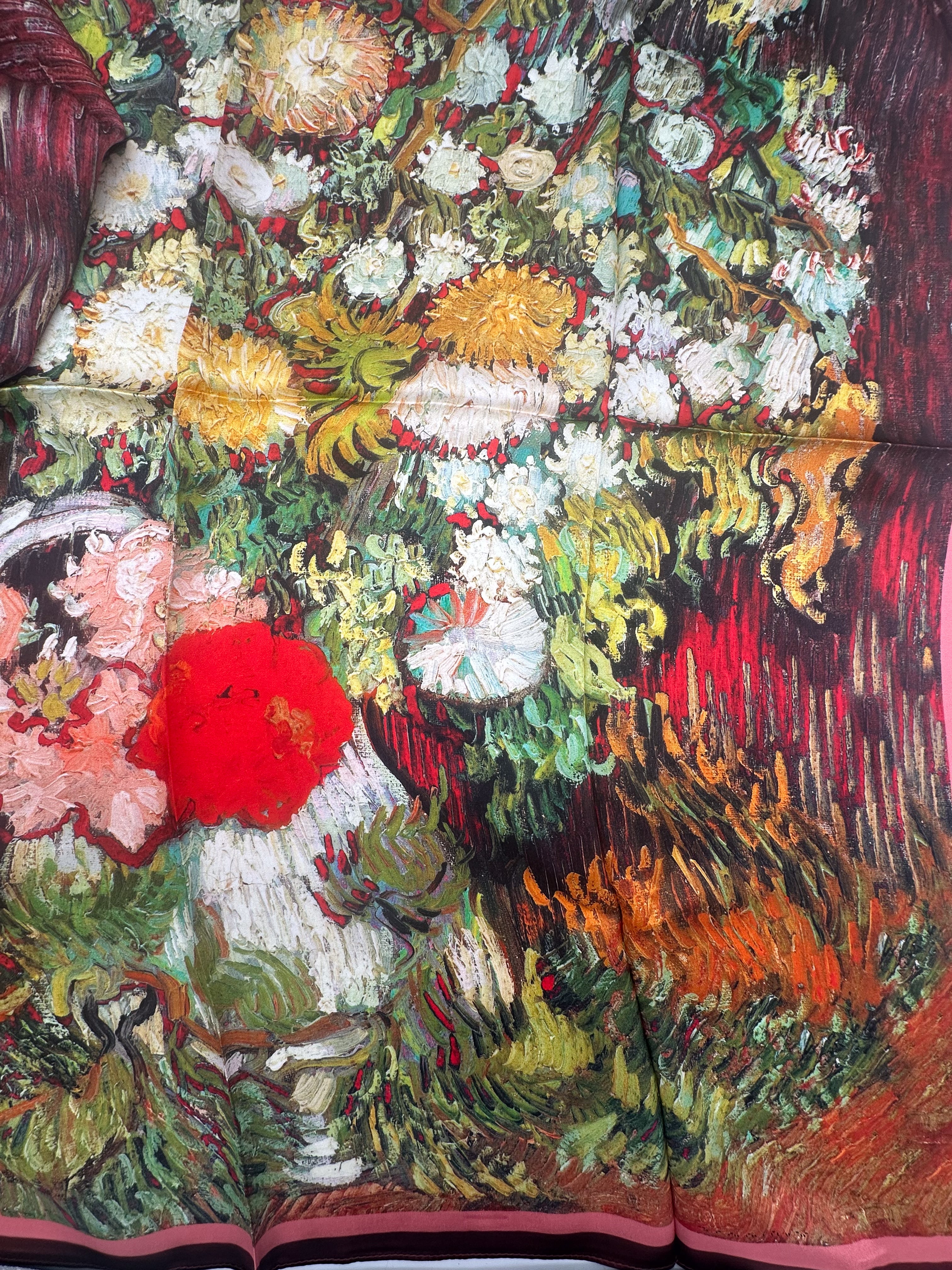 Dabīgā zīda satīna lakats 90x90 cm "Impresija vāzē"