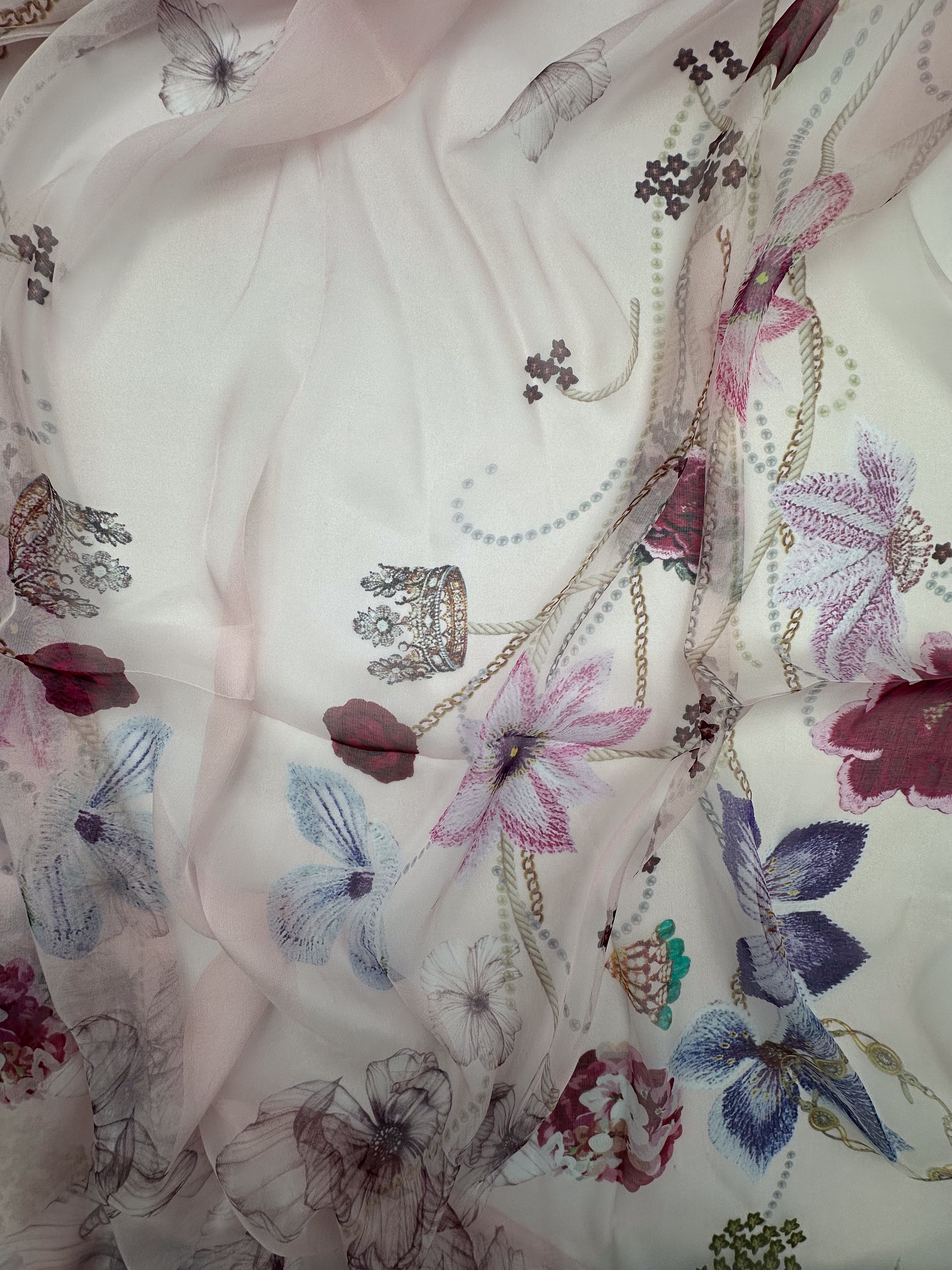 Dabīgā zīda šifona šalle "Karaliskie ziedi"