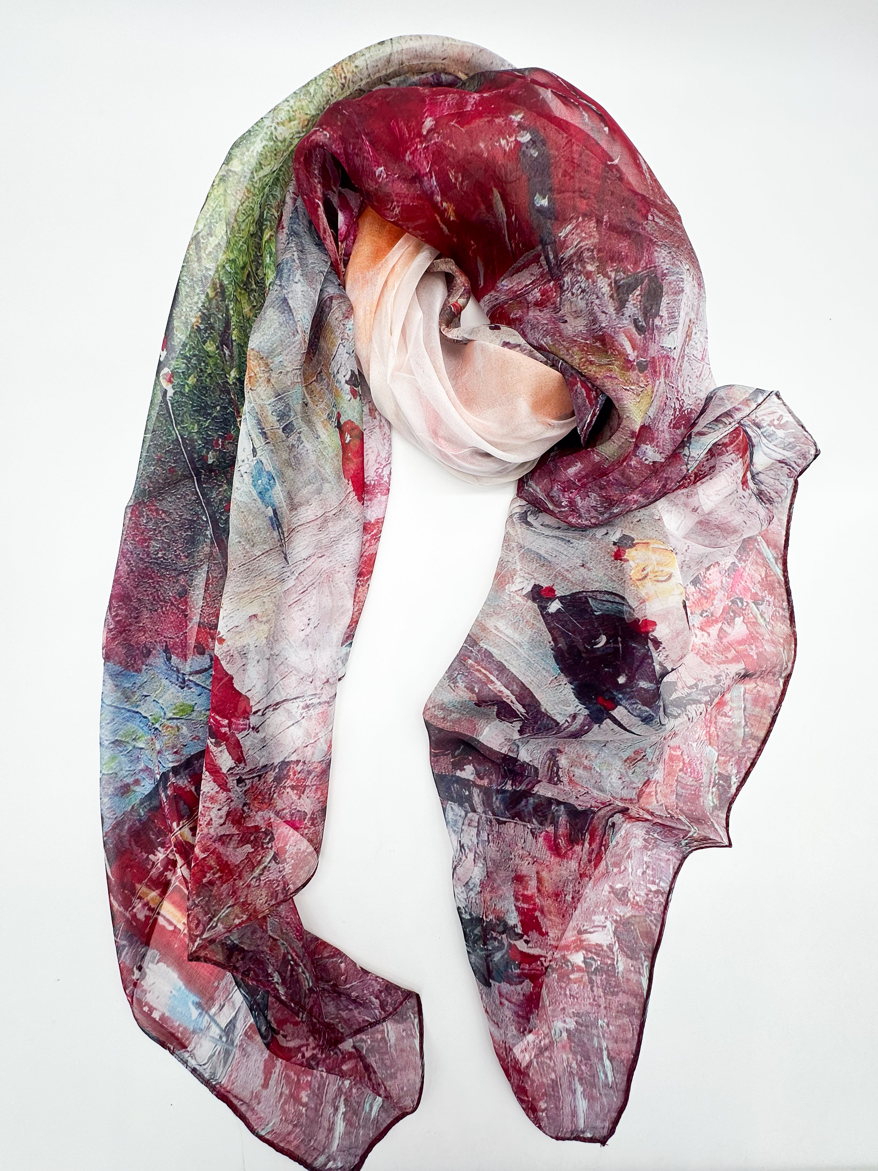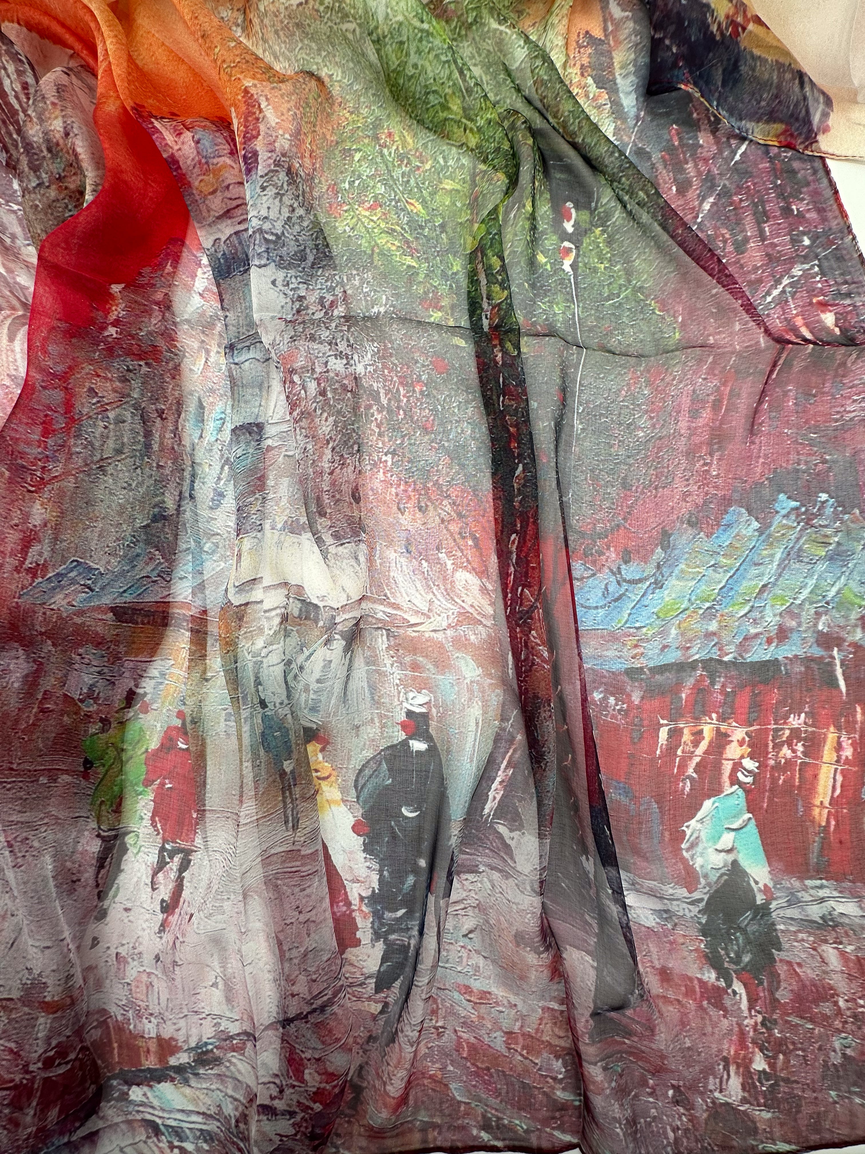 Dabīgā zīda šifona šalle lieliski piemērota valkāšanai pie kleitas,topiņa, kā arī pavasara mēteļa ,vai citām vieglām virsdrēbēm !  Šī šalle ir gaisīga, caurspīdīga un viegla tai ir skaists auduma kritums.