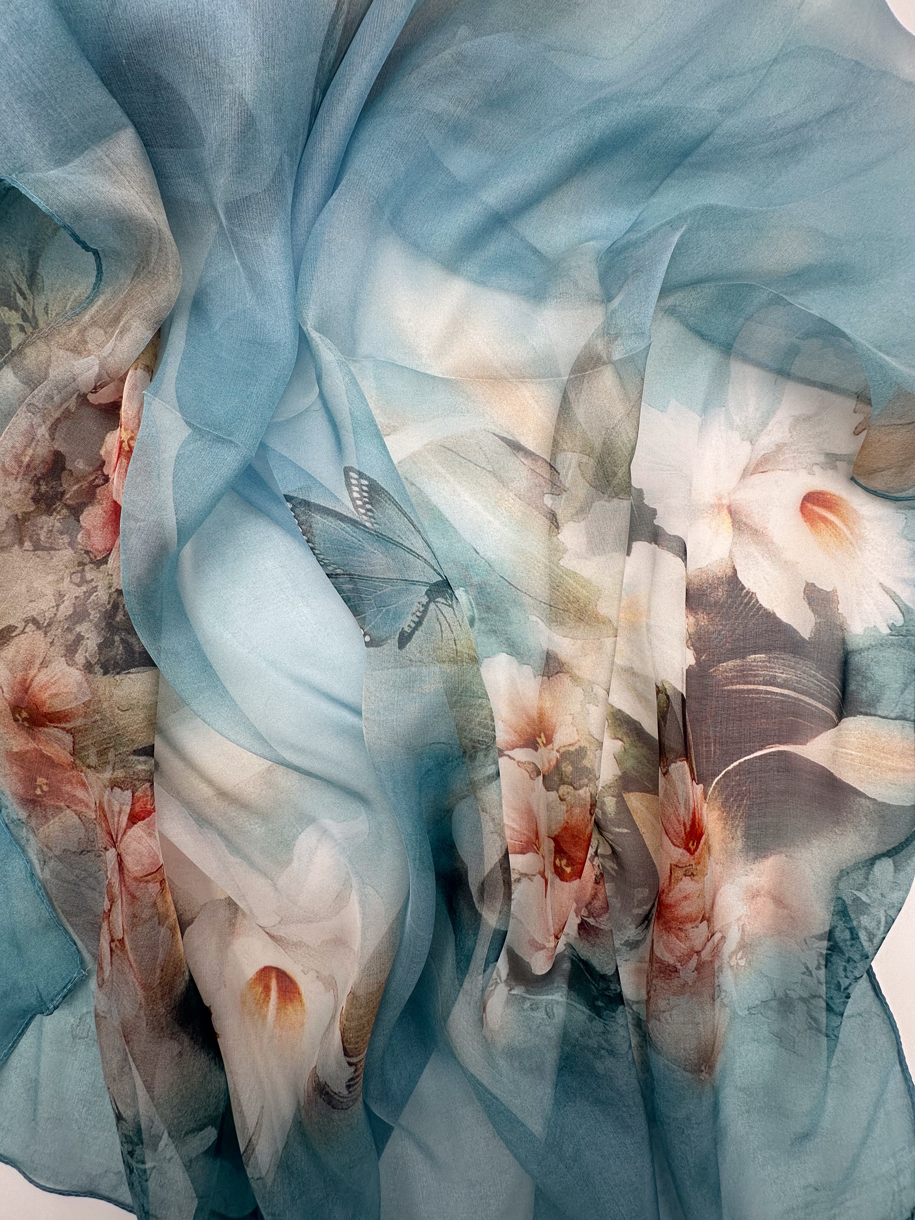 Dabīgā zīda šifona šalle "Lilijas aromāts"